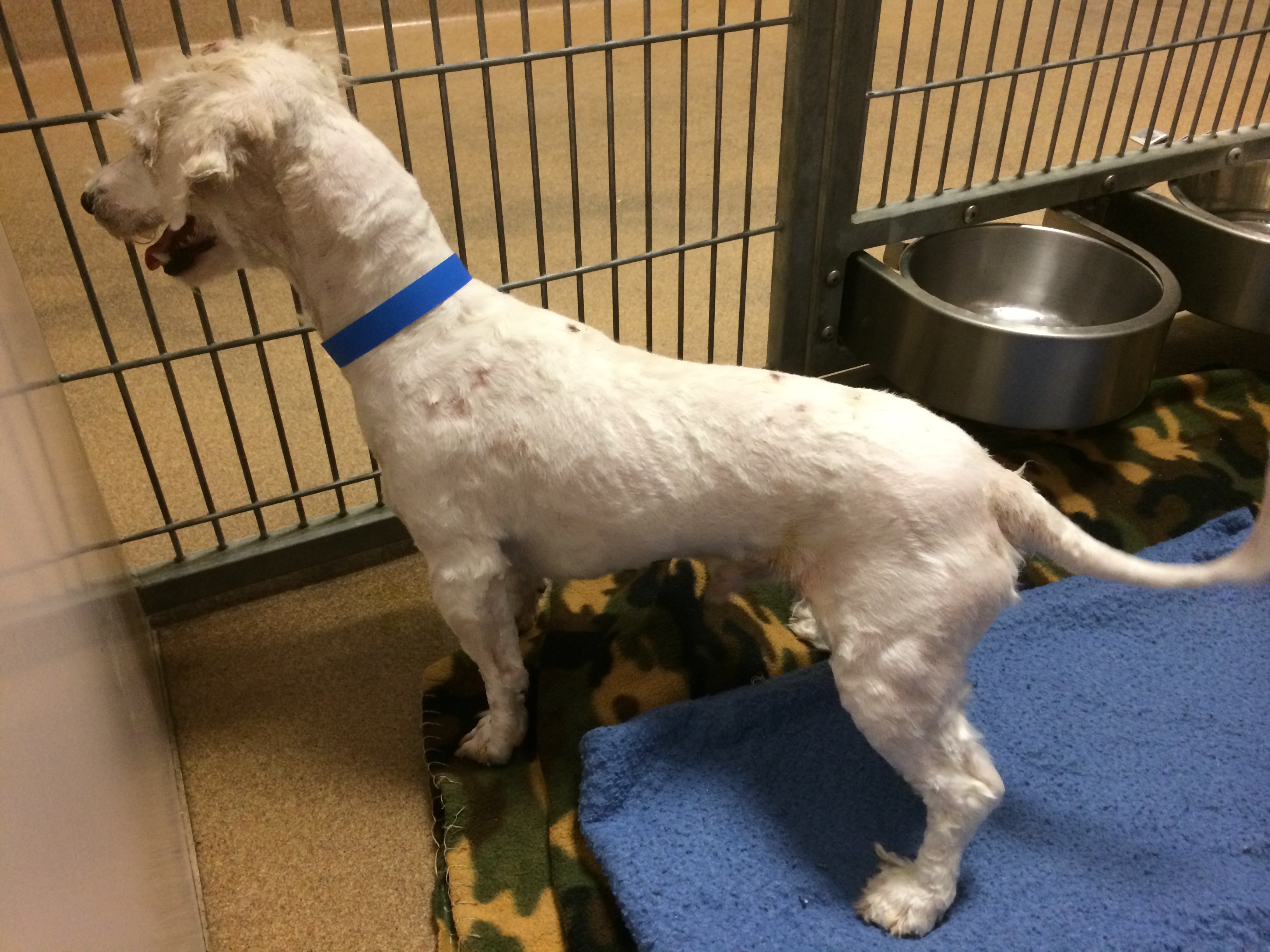 Take one look at this 3 year old Poodle mix and you may wonder how we ever decided he was a Poodle mix. His coat was so overcome with mats from not being groomed that he moved as if it was burdensome, perhaps even painful. Yet you could see that with the subtle wag of his tail, he wanted so much to be loved.