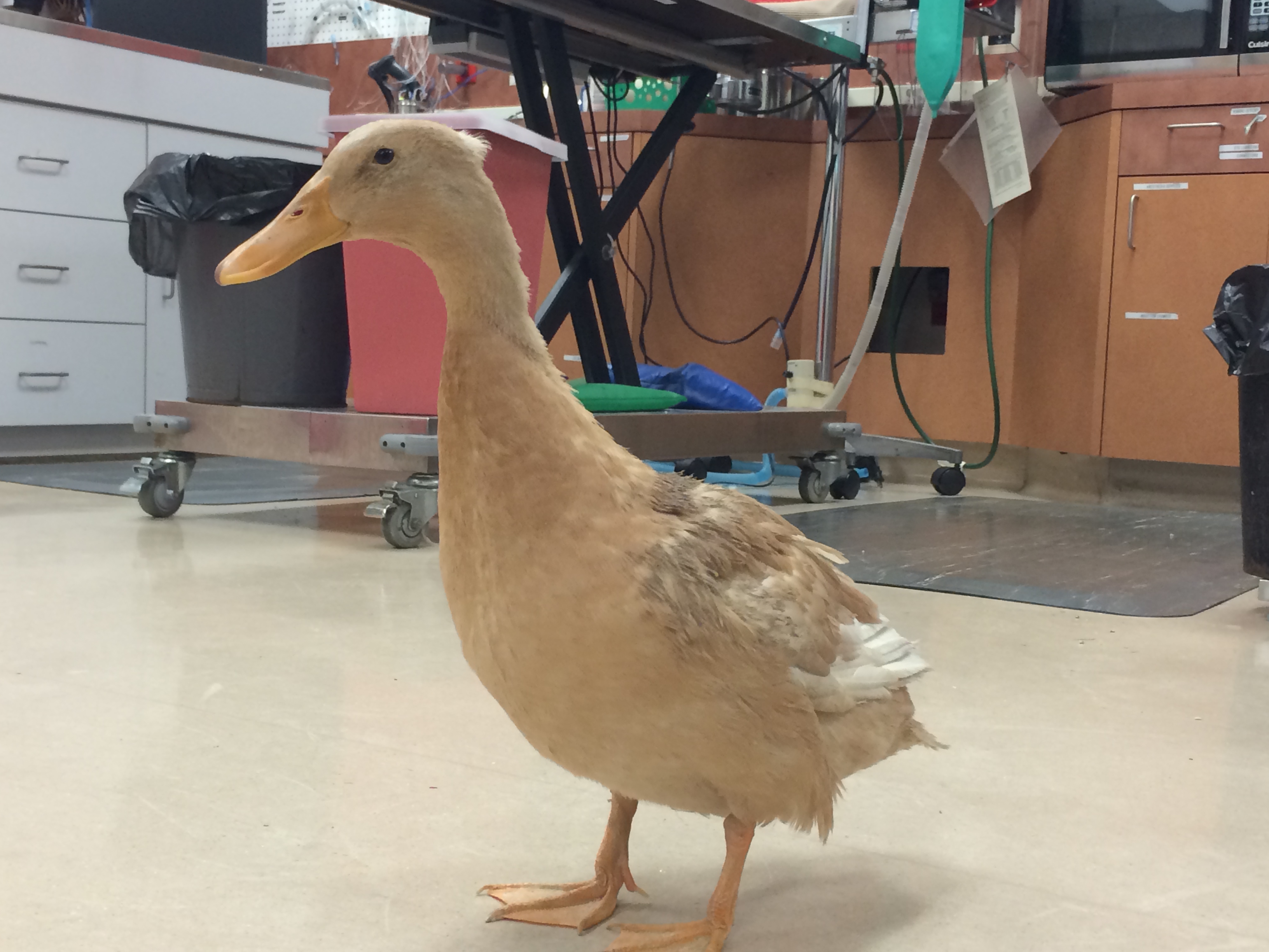 A staff member came to the clinic with a transfer carrier that was covered with a towel. I figured it was a dog or a cat per usual. When it made a loud honking noise, I was immediately expecting a dog with a severe respiratory issue that was struggling to breathe.